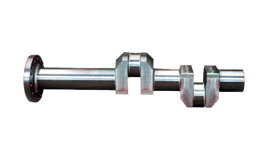 曲軸的驅(qū)動端有一個大的與本體整體鍛造的法蘭盤,可牢固地用螺栓固定在飛輪上,與電機(jī)軸法蘭或聯(lián)軸器相接。高剛度的法蘭連接設(shè)計可以承